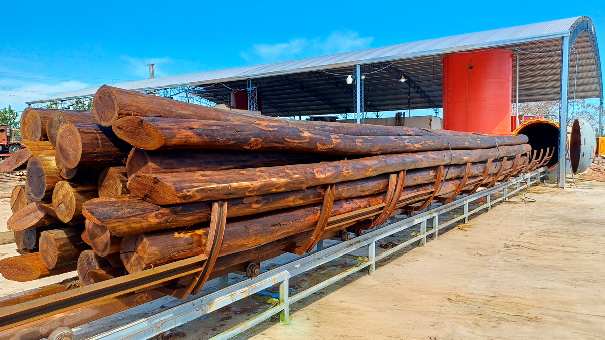 En nuestra planta realizamos un tratamiento de alta eficiencia que prolonga la vida útil de maderas y postes de especies semiduras. El proceso consta de tres etapas: vacío inicial, presión e vacío final, permitiendo una impregnación profunda y uniforme del preservante.